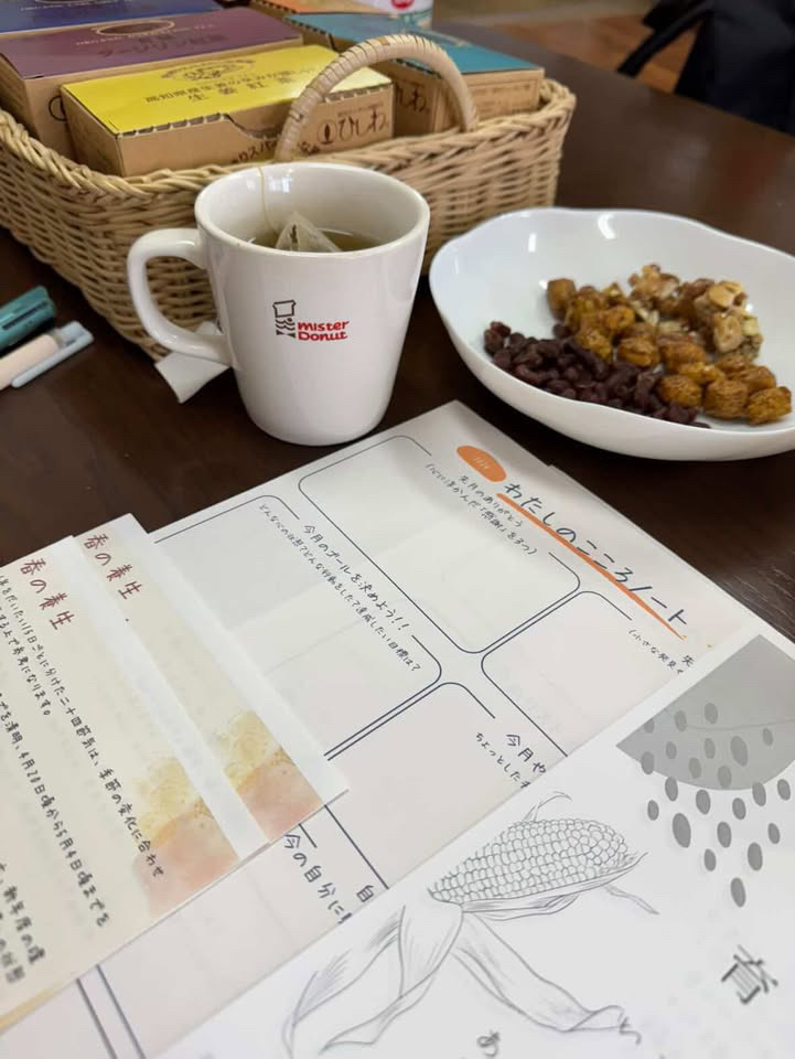 ・私は毎月テーマを変えて「ジャーナリングのワーク」を作ります。みんなで書きながら、自分の気持ちを整理して、やさしく整えていく時間です。